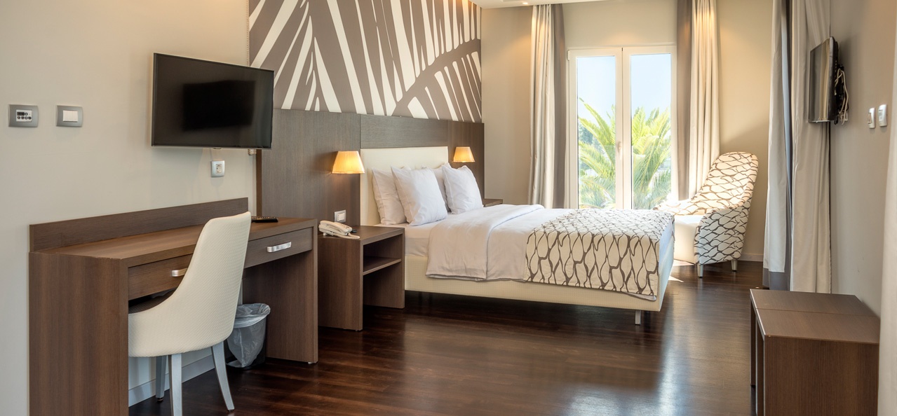Хотел Palma се наоѓа на самиот морски брег, во срцето на Тиват, со преубав поглед на Тиватскиот Залив. Во приземјето на хотелот има бифе ресторан и лоби бар, а на првиот спрат lounge бар. Има 113 модерно опремени конфорни соби од кои повеќето се со поглед на море. Хотелот располага со спа центар : хидромасажен базен, финска сауна, парно купатило, соба за релаксација, тушеви и соби за масажа. Во непосредна близина на спа центарот има и теретана. Гостите во хотелот имаат на располагање хотелска плажа која се наоѓа на само пет метри од хотелот.