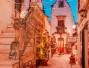 Едно од најубавите села во цела Италија сместено во срцето на Пулија, скриен бисер кој трпеливо чека да биде откриен во пресрет на Божиќните празници кога се` е волшебно- Локоротондо, шармантно романтично село каде белиот камен во комбинација со зелените растенија и златните и црвени декорации прави неверојатен колоритен контраст... Но претходно; најпрво ќе уживаме во божиќниот шарм на Бари-градот на Свети Никола или на Дедо Мраз иво Матера, местото што не` очекува со своите светла, бои, мирисии традиции за да ни подари магични моменти...Оваа година го откриваме автентичниот Божиќ во Пулиа!