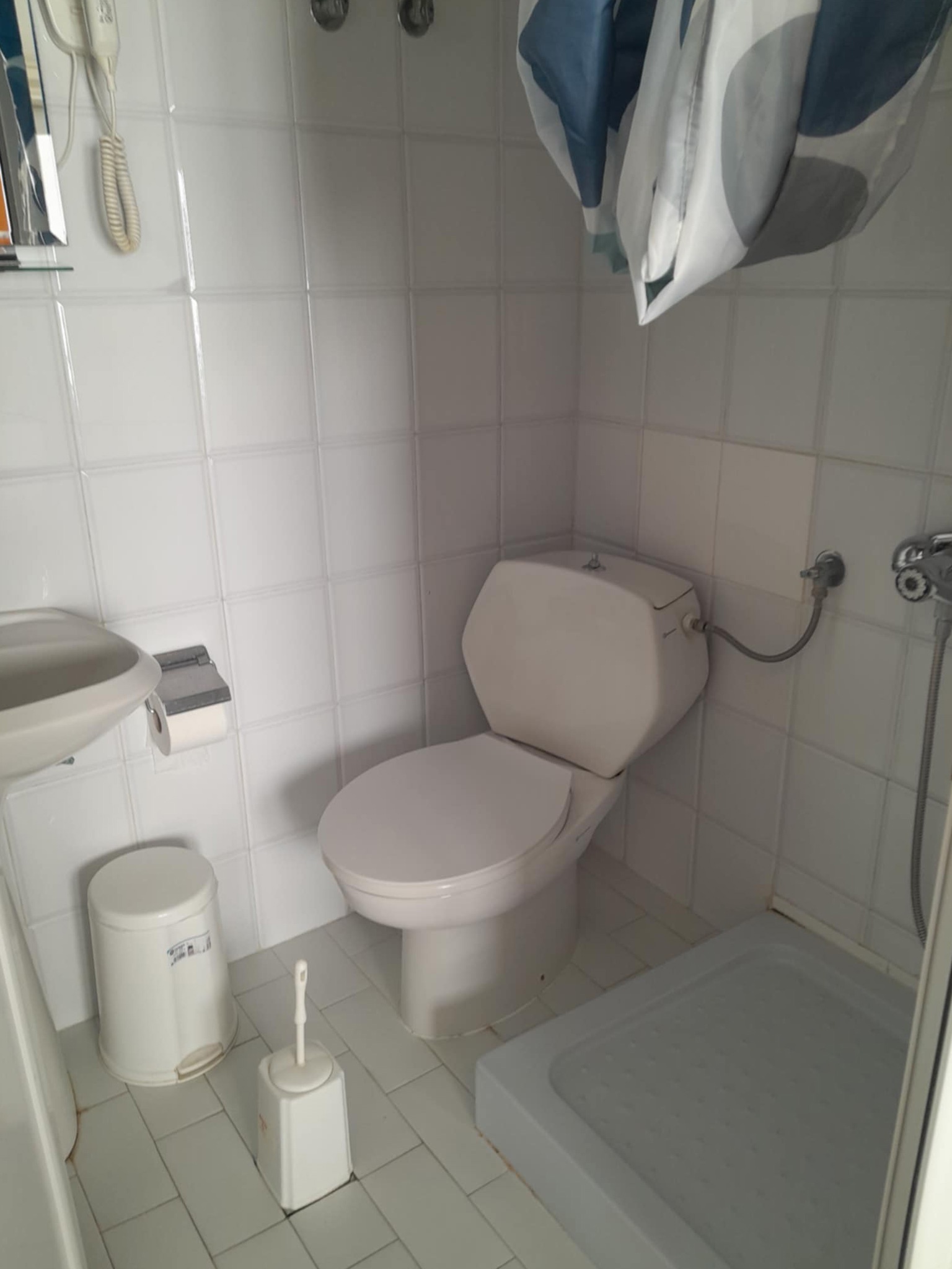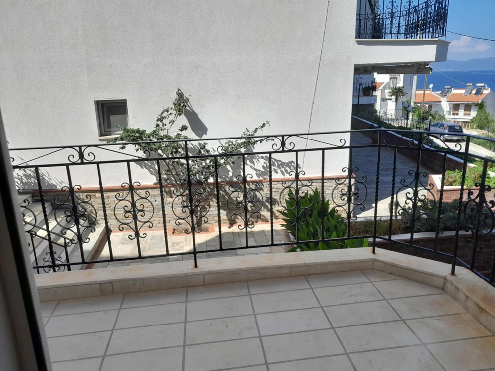Двокреветно студио на прв спрат кое има еден дупли кревет, мебел, телевизор, клима уред. Во истата просторија се сместени елементите од кујната (електрично решо со две рингли, аспиратор, фрижидер со мала комора, основни садови за готвење и јадење). Студиото има купатило со сопствен бојлер. Терасата е со нормална големина, опремена е со пластична маса и столчиња и има поглед на море.