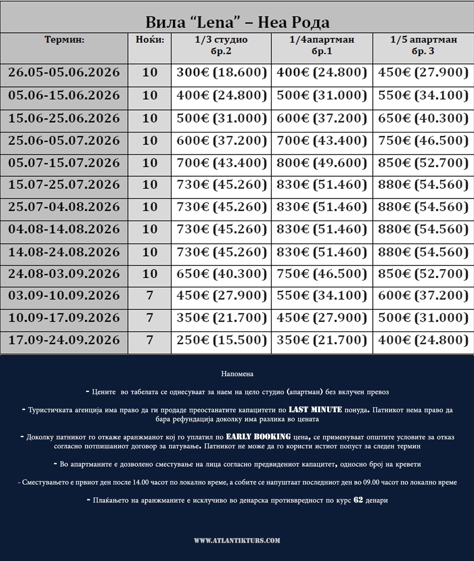 ПРЕД ДА ИЗВРШИТЕ УПЛАТА ВЕ МОЛИМЕ ЈАВЕТЕ СЕ ВО АГЕНЦИЈАТА НА ТЕЛ 043/ 420 885 ; 412 885; 413 885 ; 071 661 589 И ПРОВЕРЕТЕ ДАЛИ ИМА СЛОБОДНИ МЕСТА