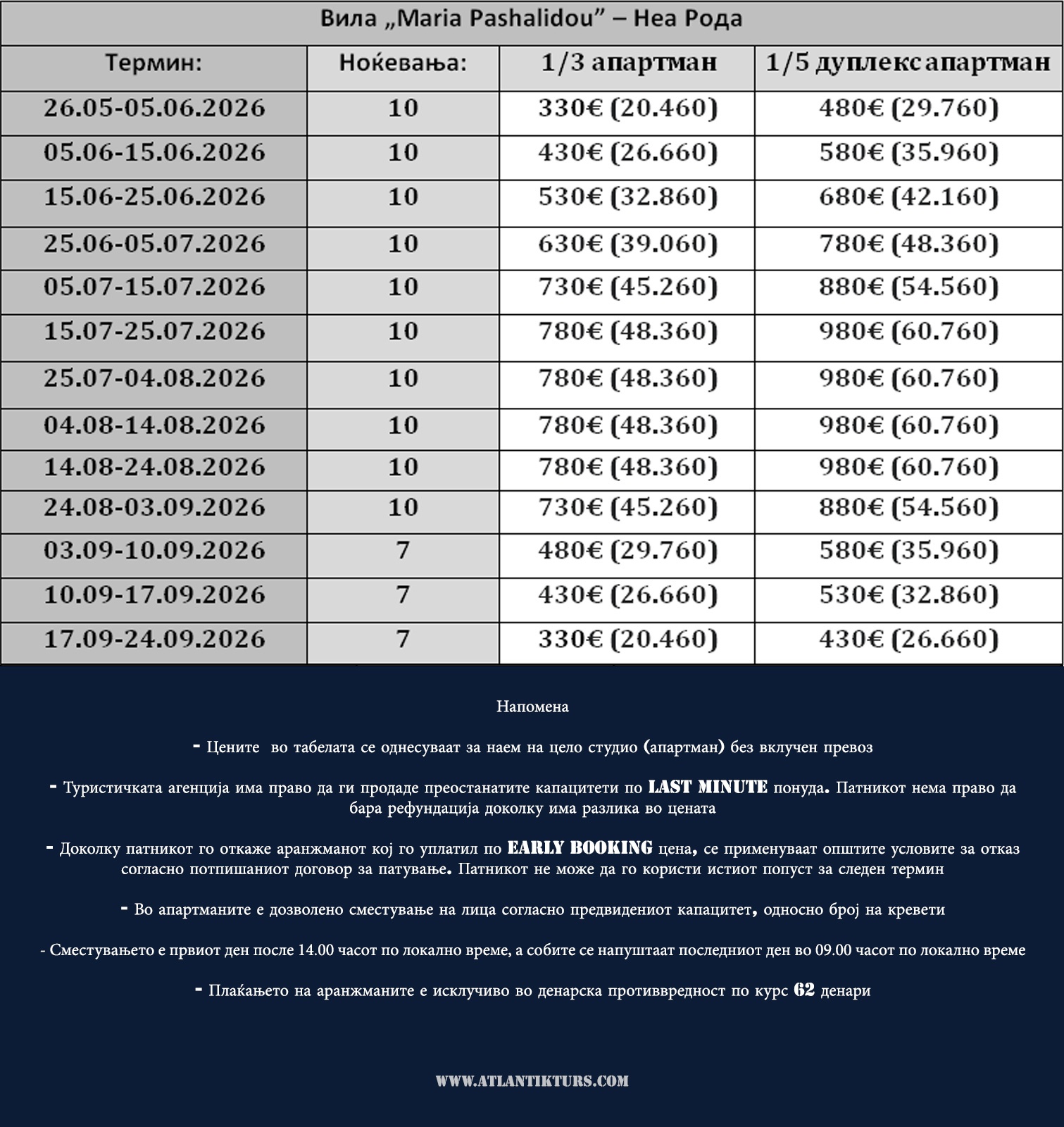 ПРЕД ДА ИЗВРШИТЕ УПЛАТА ВЕ МОЛИМЕ ЈАВЕТЕ СЕ ВО АГЕНЦИЈАТА НА ТЕЛ 043/ 420 885 ; 412 885; 413 885 ; 071 661 589 И ПРОВЕРЕТЕ ДАЛИ ИМА СЛОБОДНИ МЕСТА